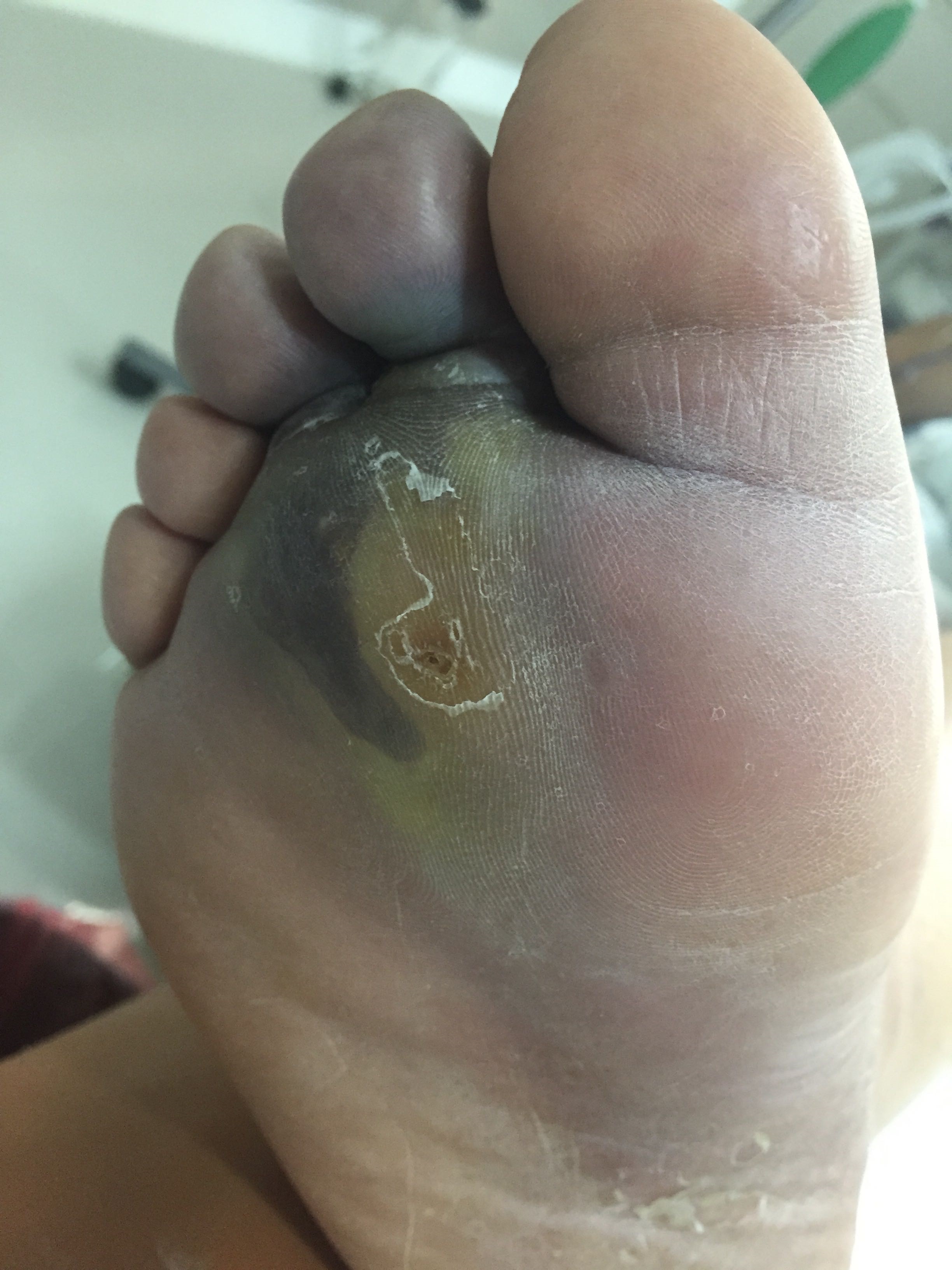 - La maceración de los espacios interdigitales entre el cuarto y el quinto dedo.